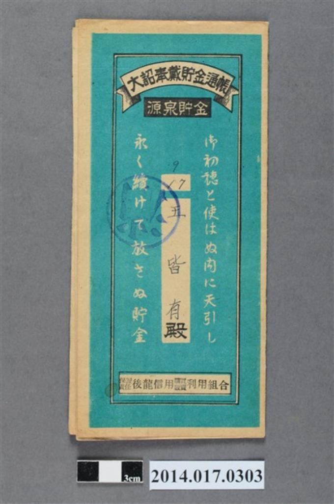 保證責任後龍信用購買販賣利用組合給王皆有大詔奉戴儲金簿