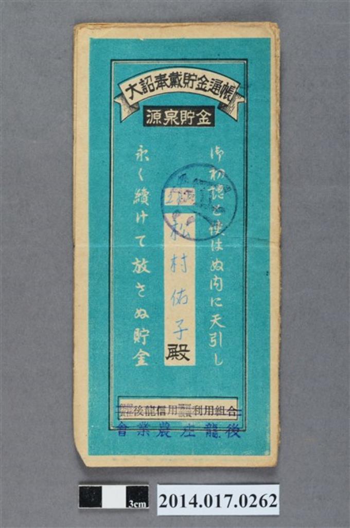 後龍庄農業會給松村佑子大詔奉戴儲金簿