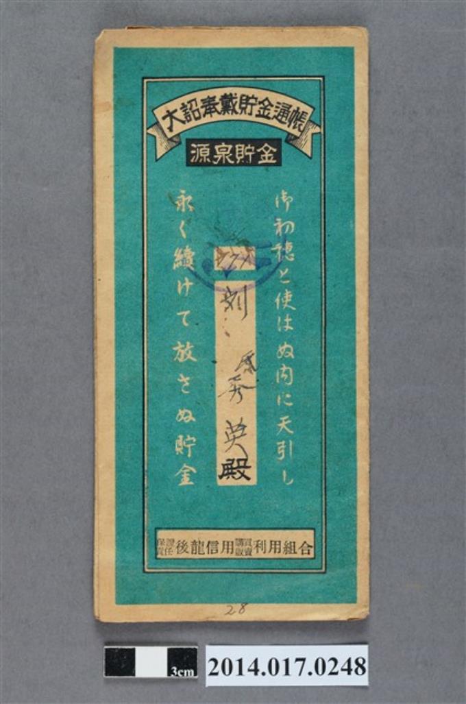 保證責任後龍信用購買販賣利用組合給劉秀英大詔奉戴儲金簿