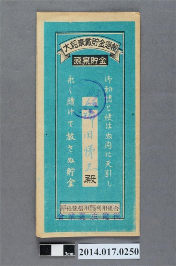 後龍庄農業會給瑞田悌之大詔奉戴儲金簿