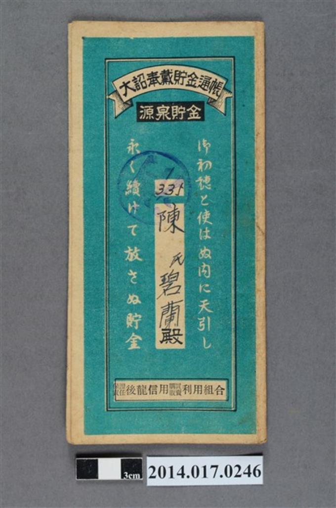 保證責任後龍信用購買販賣利用組合給陳碧蘭大詔奉戴儲金簿