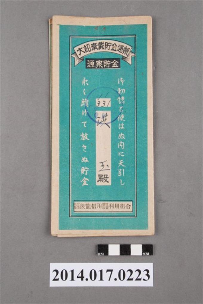 保證責任後龍信用購買販賣利用組合給洪玉大詔奉戴儲金簿