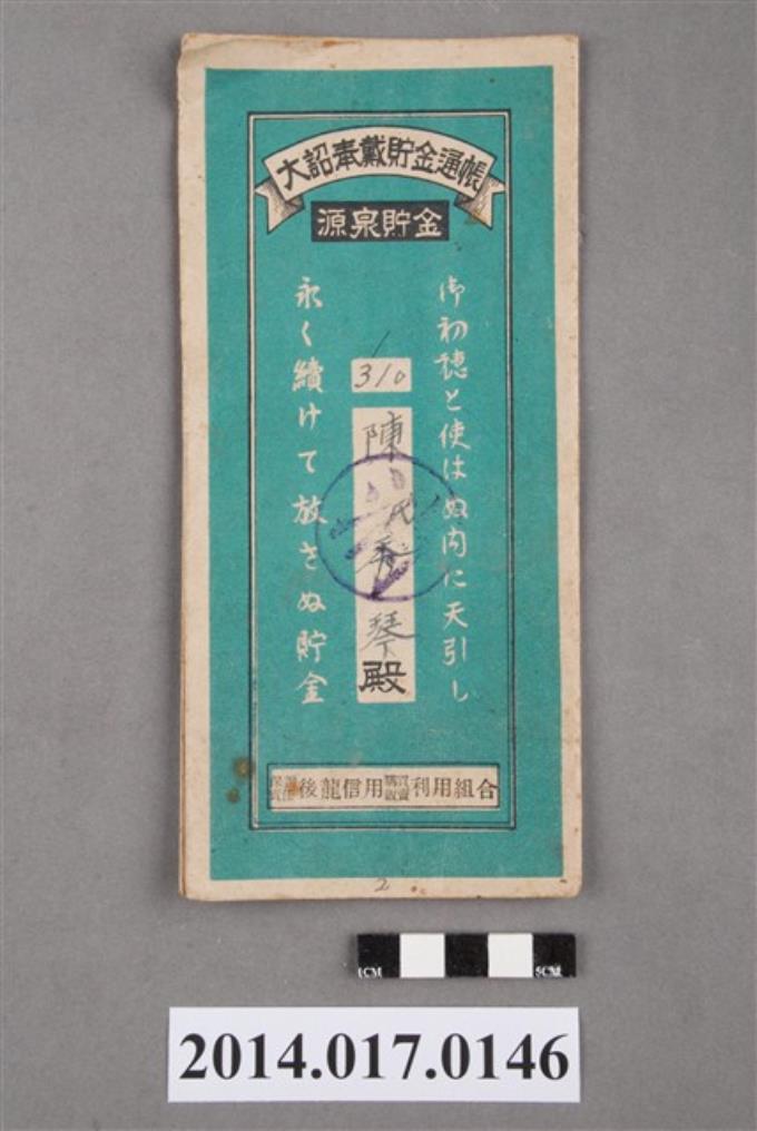 保證責任後龍信用購買販賣利用組合給陳秀琴大詔奉戴儲金簿