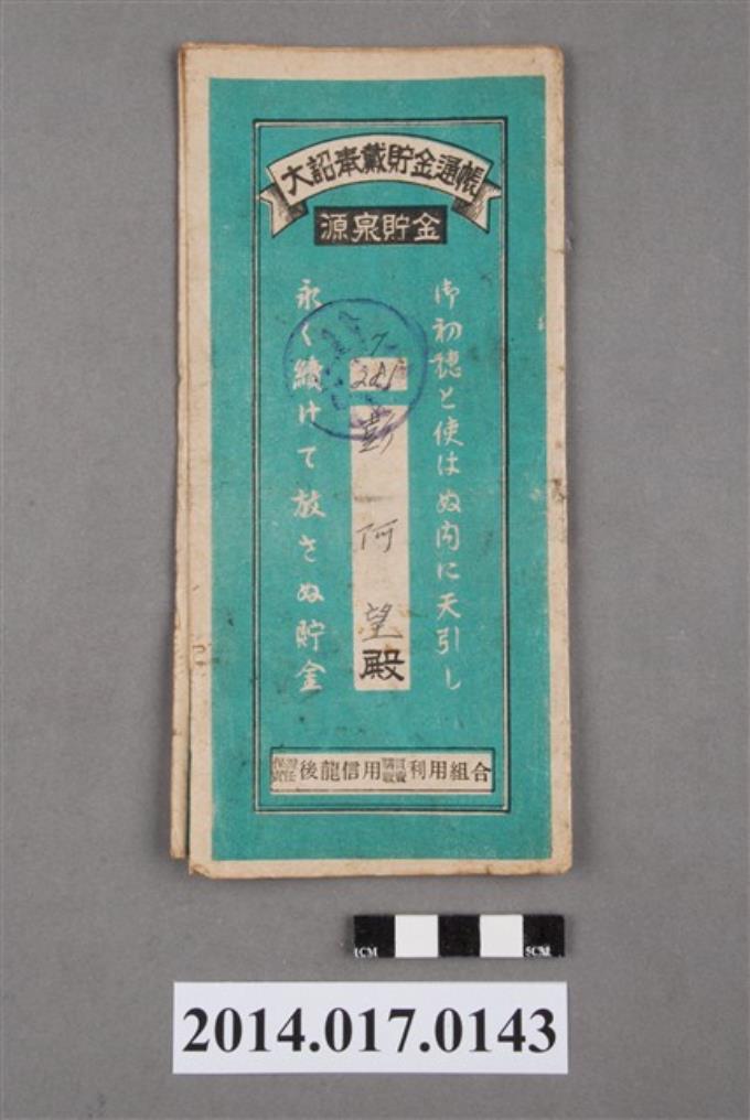 保證責任後龍信用購買販賣利用組合給胡阿祿大詔奉戴儲金簿