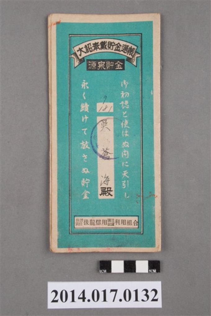 保證責任後龍信用購買販賣利用組合給謝瑞臺大詔奉戴儲金簿