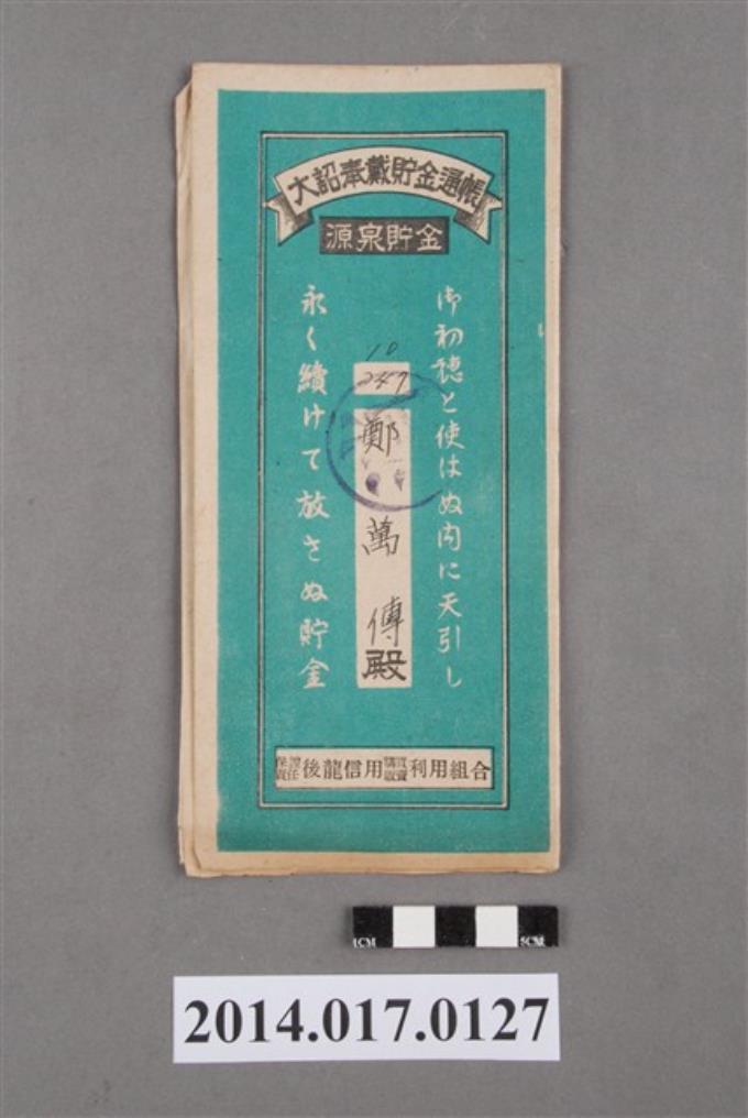保證責任後龍信用購買販賣利用組合給鄭萬傳大詔奉戴儲金簿