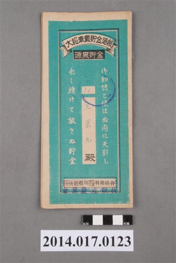 後龍庄農業會給王呆九大詔奉戴儲金簿