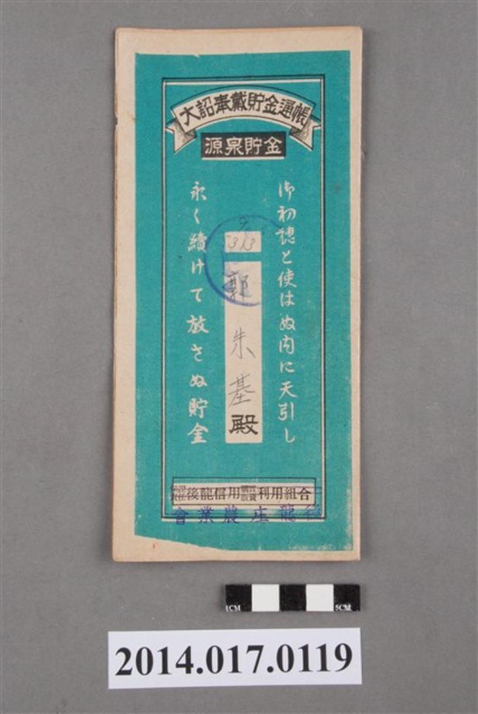 保證責任後龍信用購買販賣利用組合給戴鐘大詔奉戴儲金簿