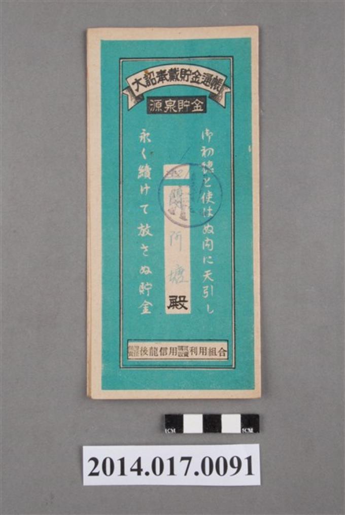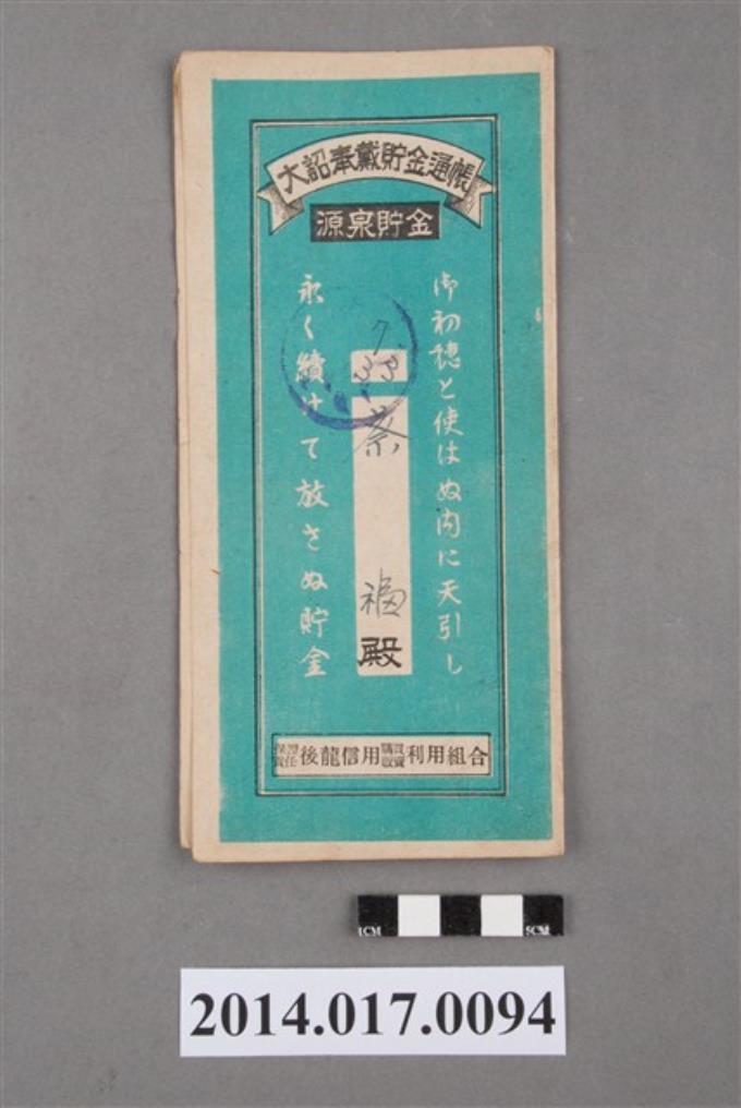 保證責任後龍信用購買販賣利用組合給朱添籌大詔奉戴儲金簿