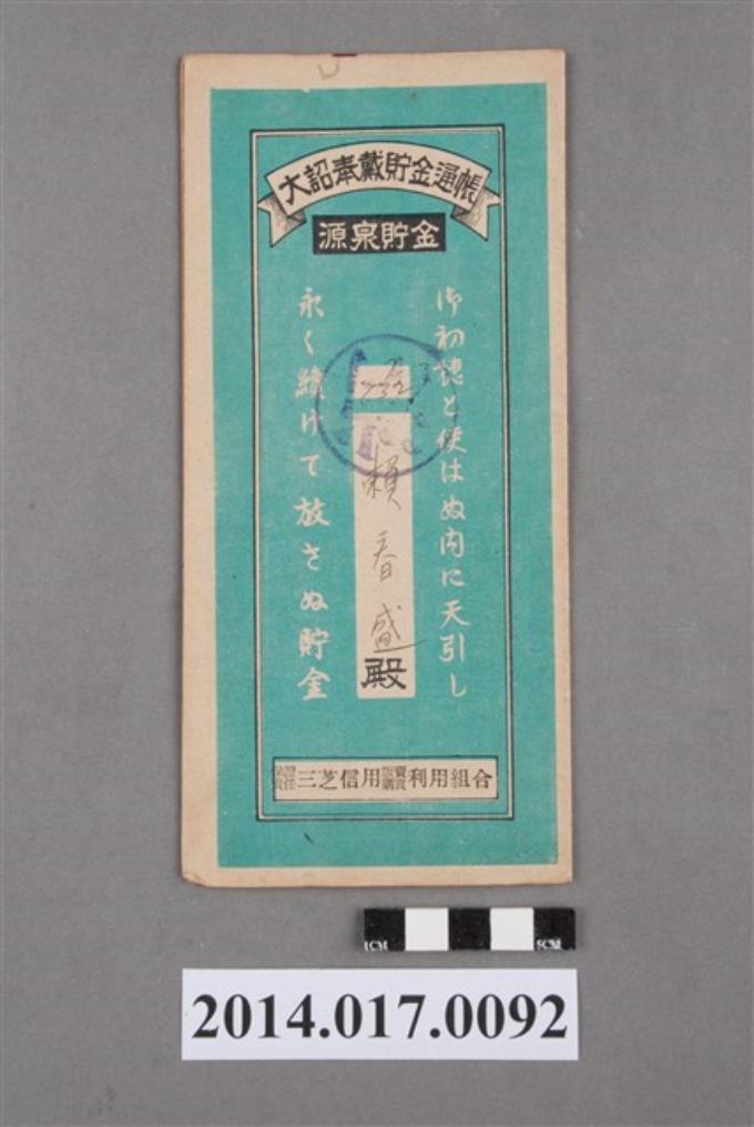 保證責任三芝信用販賣購買利用組合給賴春盛大詔奉戴儲金簿