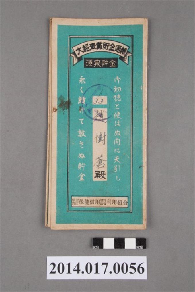 保證責任後龍信用購買販賣利用組合給黃愩大詔奉戴儲金簿
