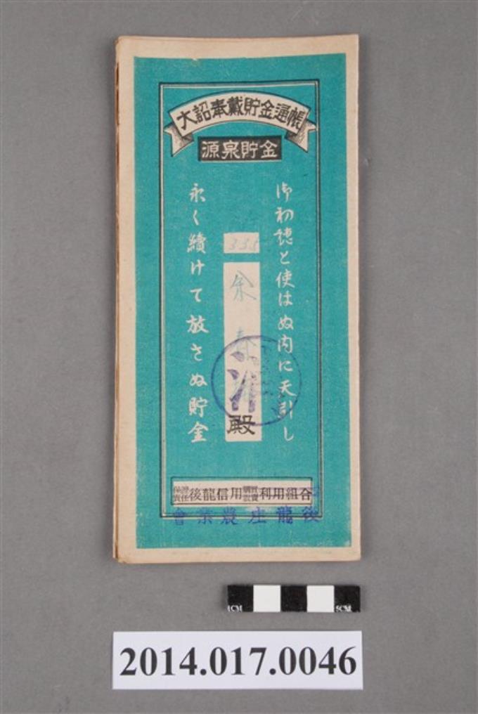 保證責任後龍信用購買販賣利用組合給杜煥大詔奉戴儲金簿