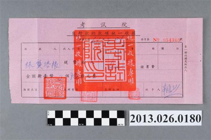 民國61年中華民國考試院開立之林龔添根證書規費收據