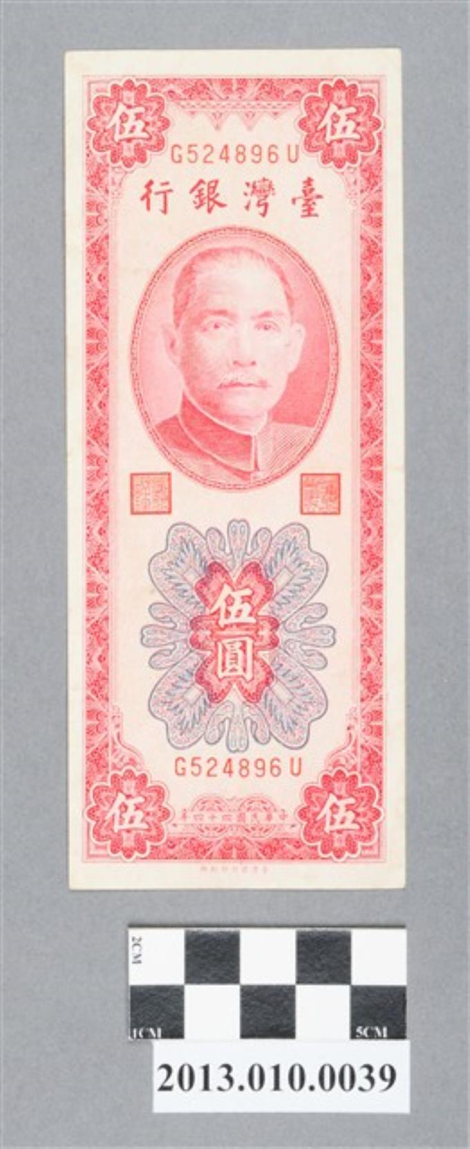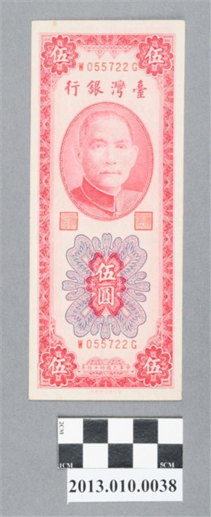 臺灣銀行印刷所伍圓臺灣銀行新臺幣