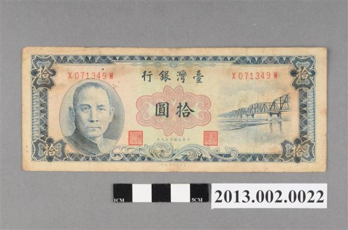 新臺幣-拾圓紙鈔(臺灣銀行民國49年發行)