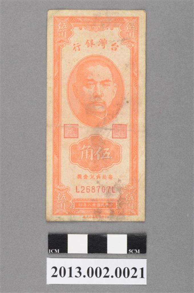 新臺幣-伍角紙鈔(台灣銀行民國38年發行)