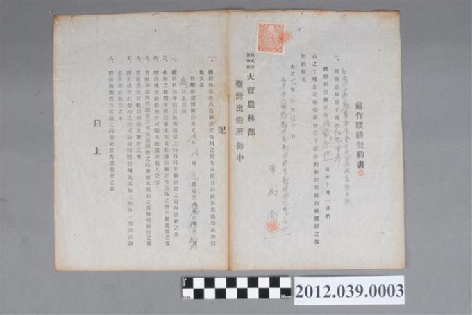 陳和尚與株式合資會社大寶農林部臺灣出張所前作贌佃耕契約書