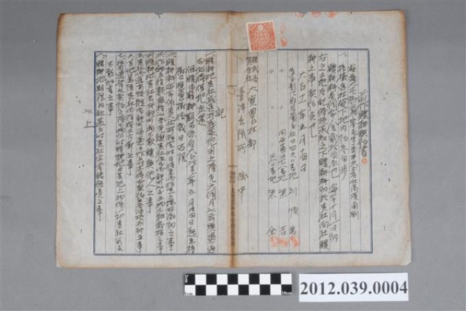 劉順發梁吉梁全與株式合資會社大寶農林部臺灣出張所前作贌佃耕契約書