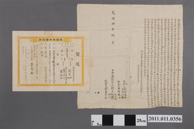 光緒10年劉文煌等典與蘇貞源仝立典契及契尾