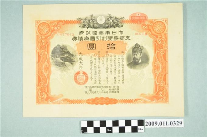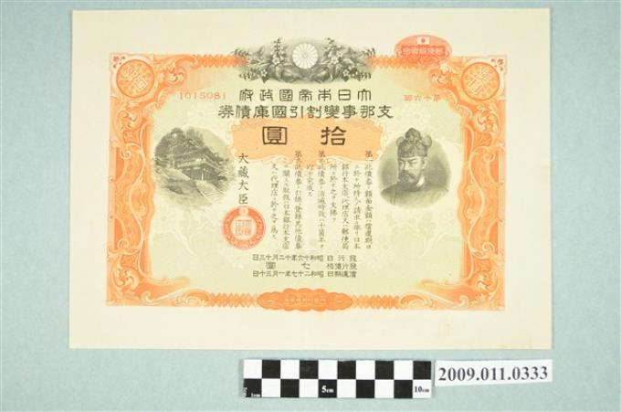 大日本帝國政府七七事變第三次發行折扣國庫債券拾圓