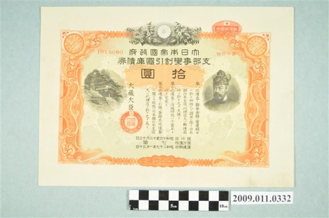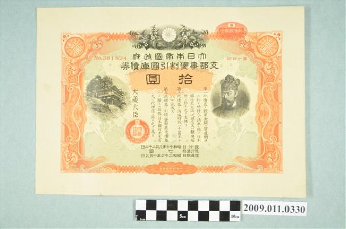大日本帝國政府七七事變第四次發行折扣國庫債券拾圓
