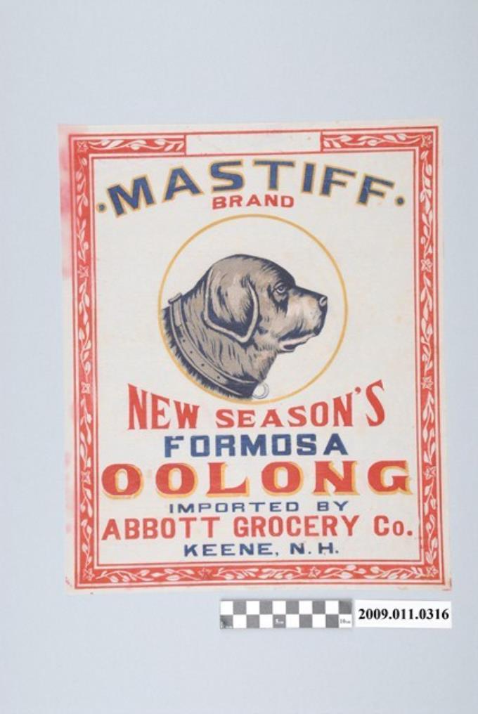 獒犬牌新上市福爾摩沙烏龍茶茶箱標籤