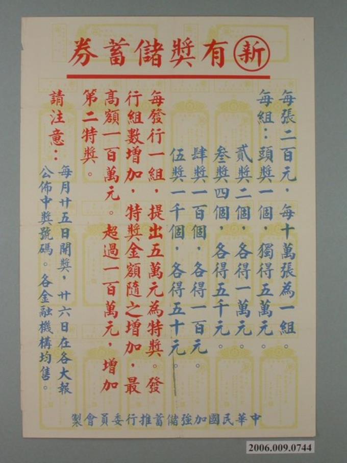 新有獎儲蓄券廣告