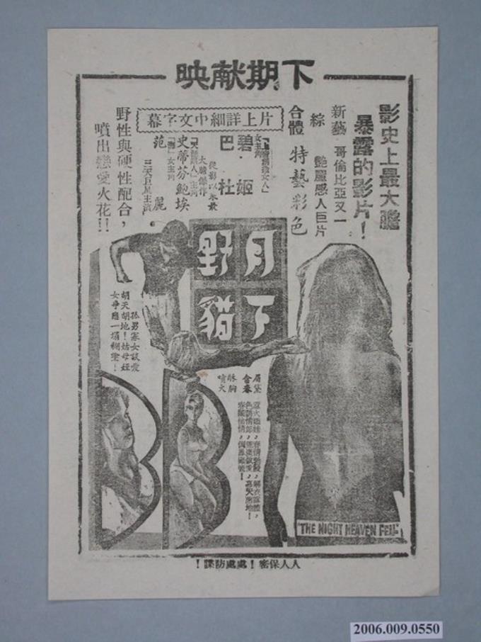 《月下野貓》電影廣告單