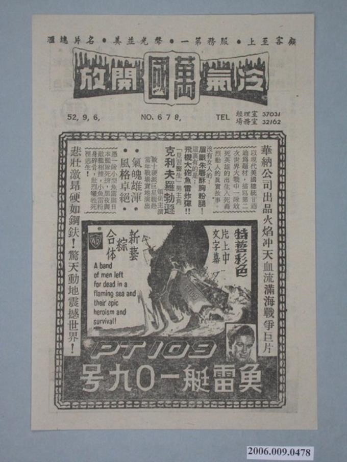 《魚雷艇一0九号》電影廣告單