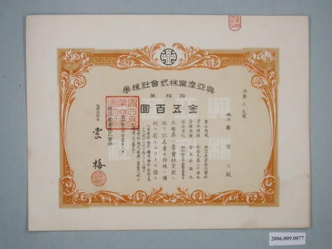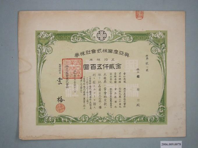 昭和16年興亞產業公司股票