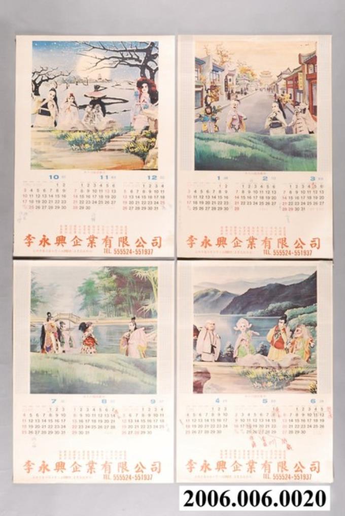 李永興企業有限公司發行民國60年史艷文布袋戲圖廣告月曆組