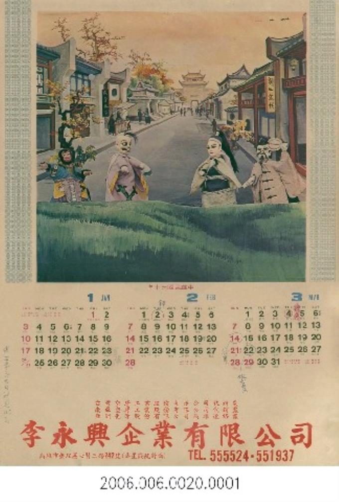 李永興企業有限公司發行民國60年史艷文布袋戲圖廣告月曆1、2、3月