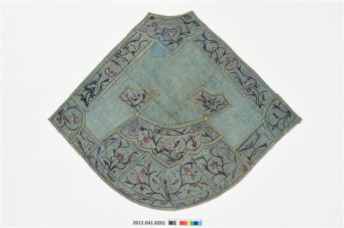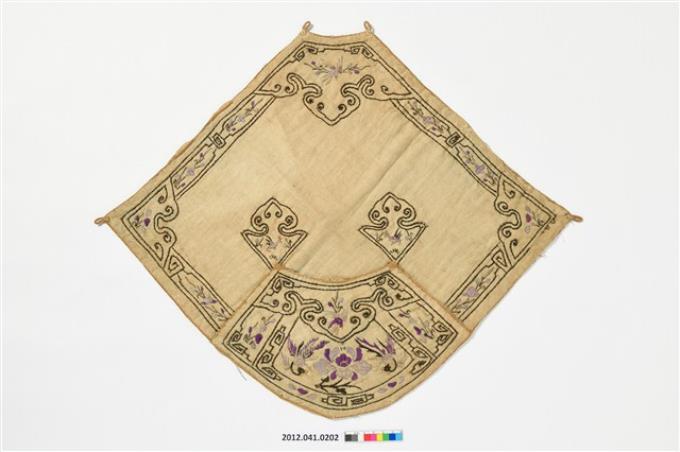 米黃地彩繡鳳凰牡丹紋菱形肚兜