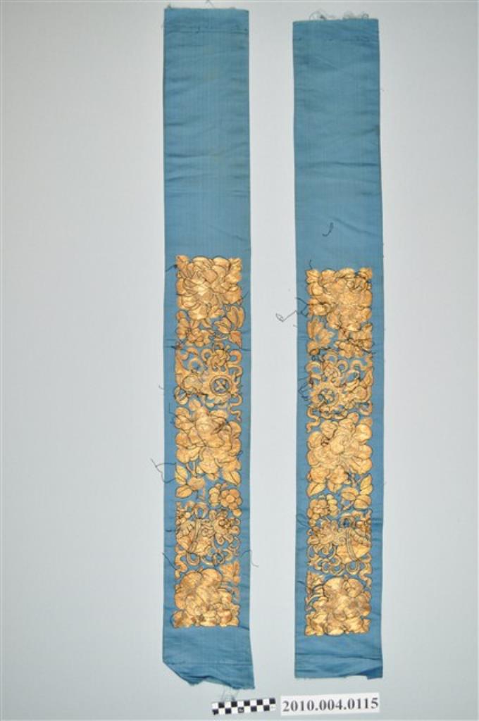 藍絲緞盤金釘線袖口布片組