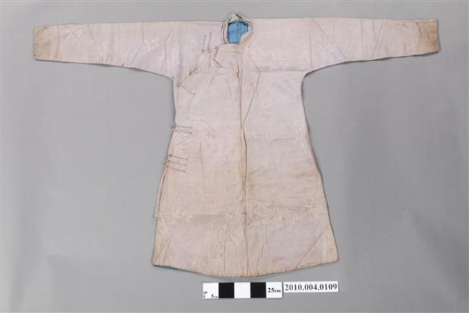 粉紫絲質緹花大襟男長袍