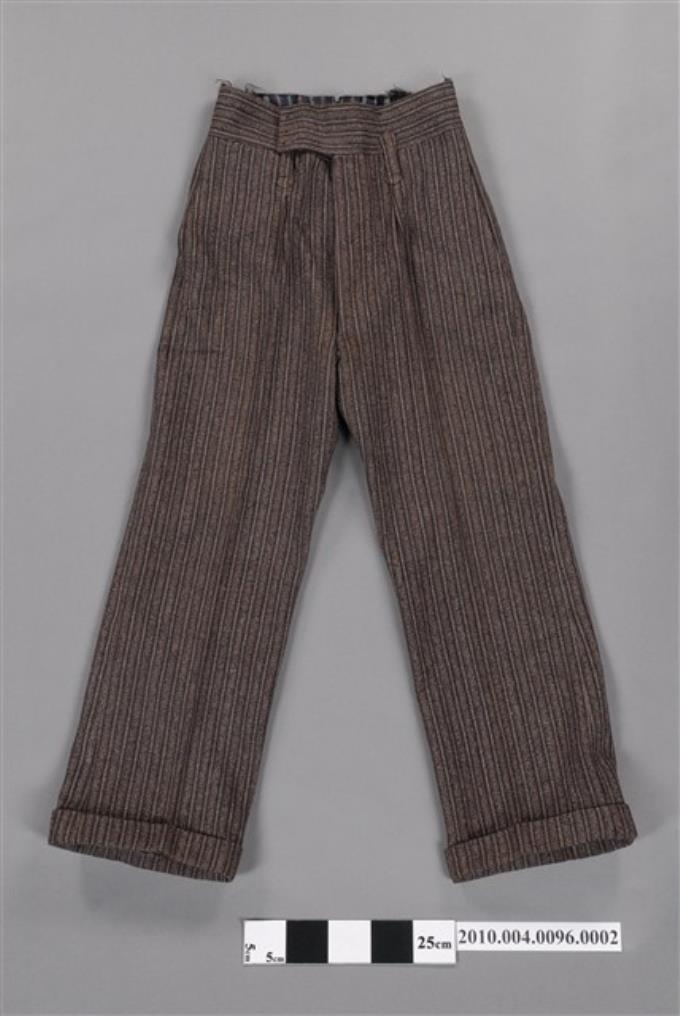棕色條紋毛料男性西裝褲