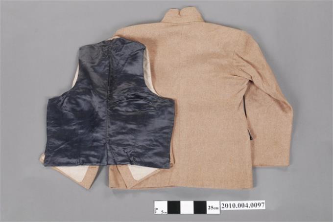 米黃毛料西裝外套與背心組