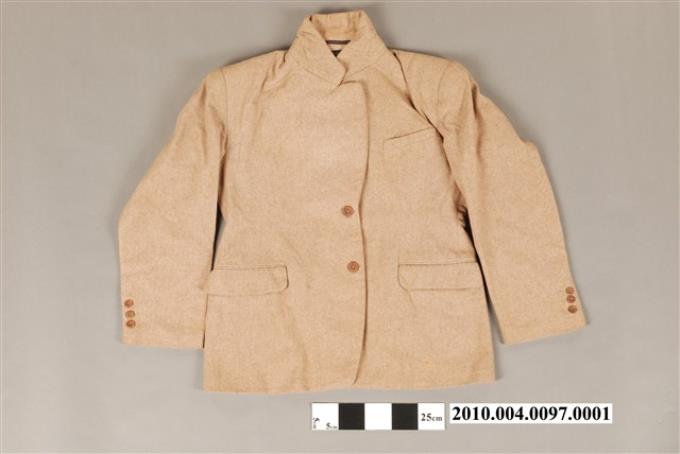 米黃毛料翻領西裝外套