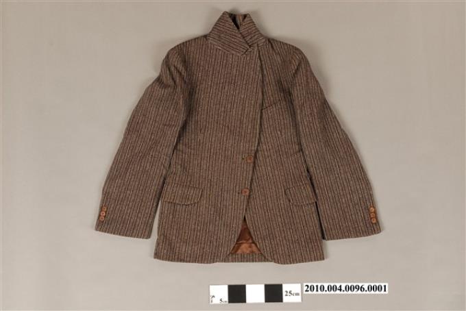 棕色條紋毛料劍領男性西裝外套