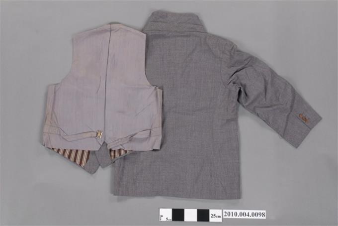 灰毛料西裝外套與背心組