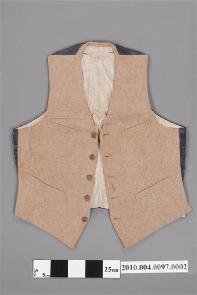 米黃毛料前開襟西式男背心