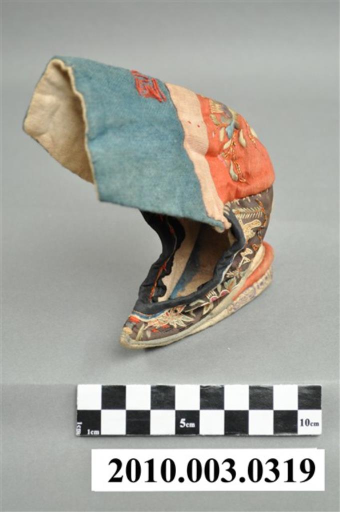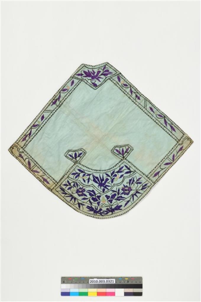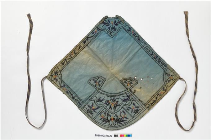 藍色地彩繡花卉蝴蝶紋附綁帶菱形肚兜