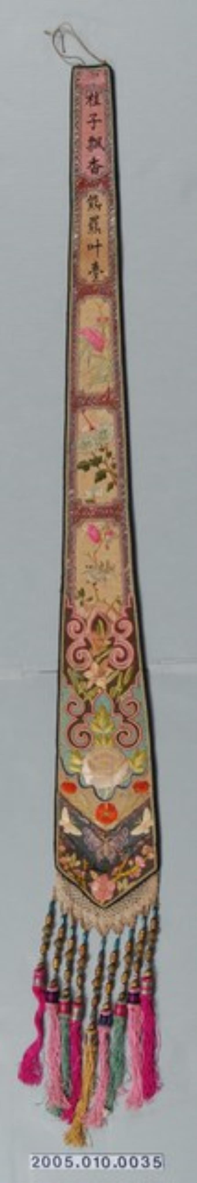 黑色地彩繡牡丹花紋下端寬形肚兜
