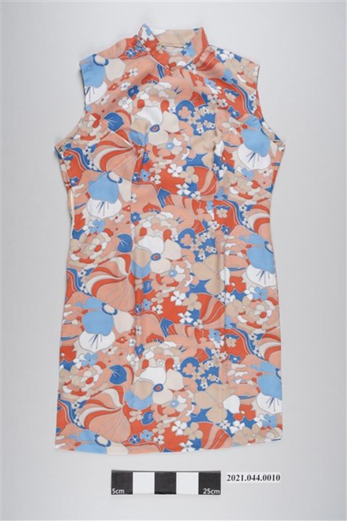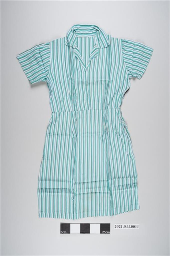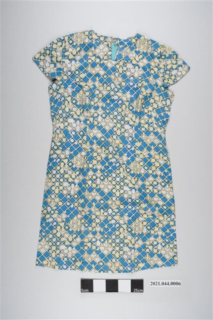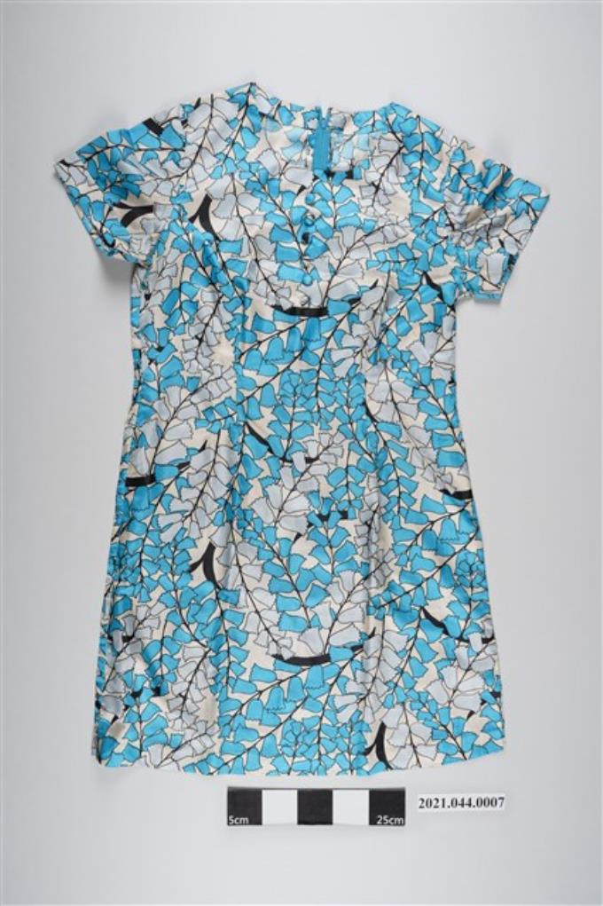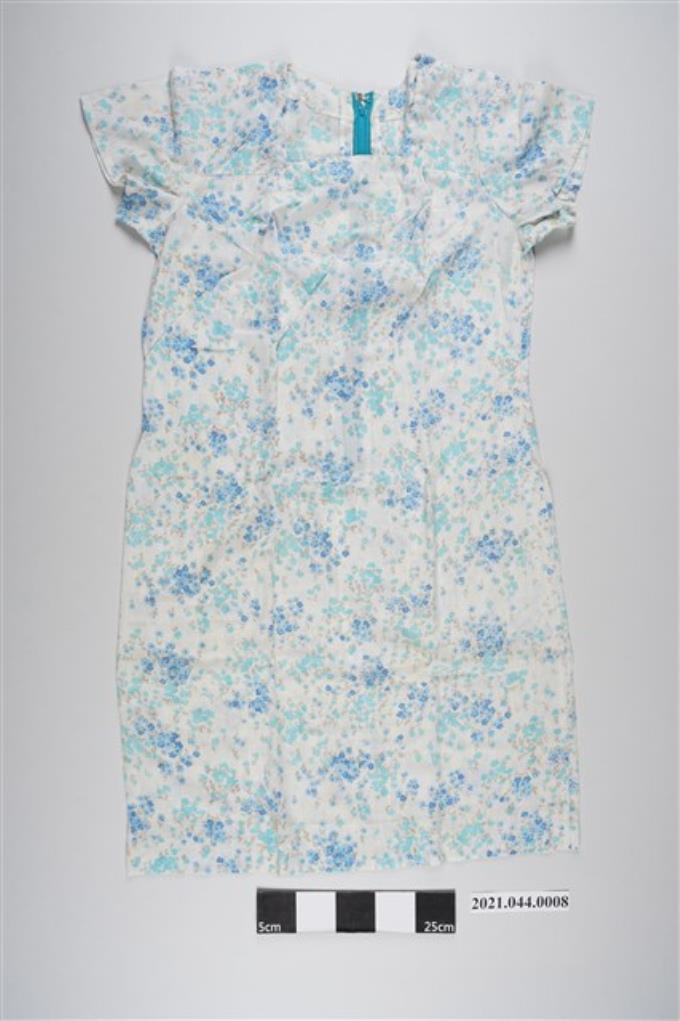 粉藍小碎花印花紋短袖方領一件式洋裝