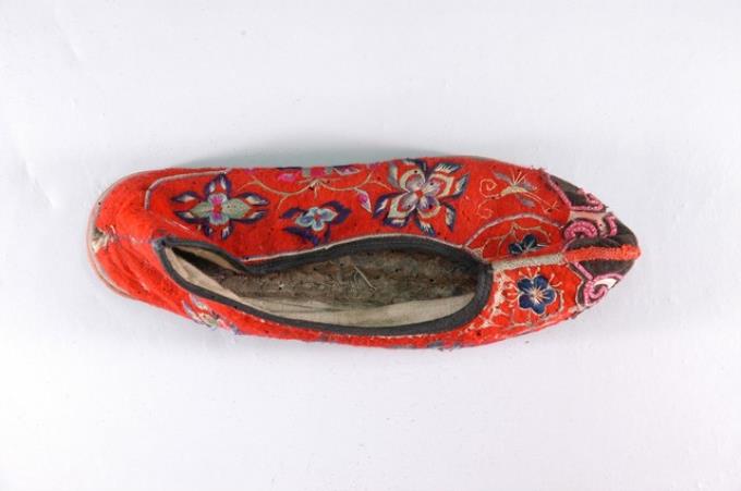 紅地繡花客家女鞋右足