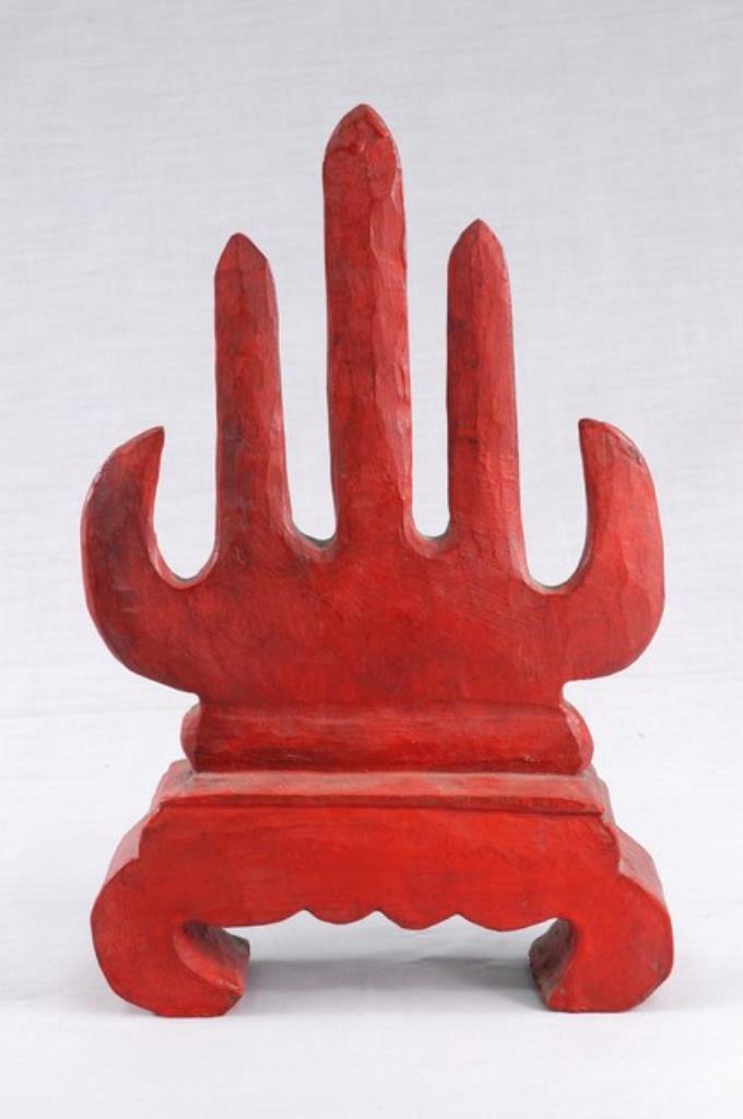 紅地彩繡牡丹紋附綁帶菱形肚兜
