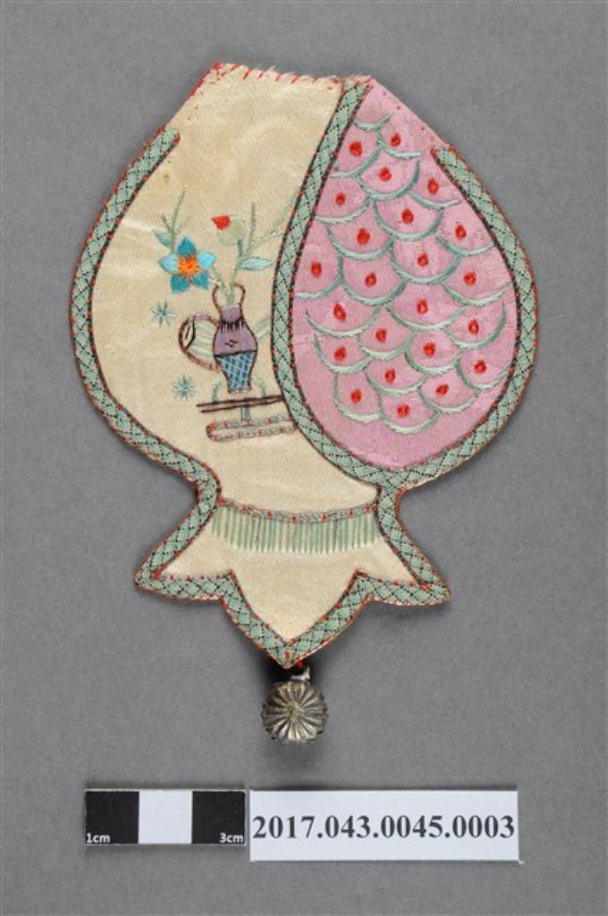 石榴形彩繡蝴蝶紋飾片