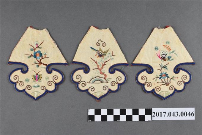 如意雲頭形蝴蝶花鳥紋繡片組