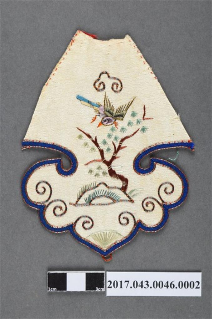 如意雲頭形樹石禽鳥紋繡片