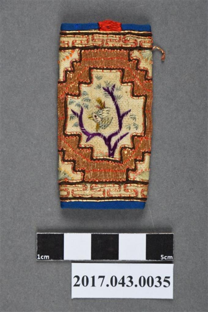 紫絲緞刺繡花鳥蝴蝶紋飾帶